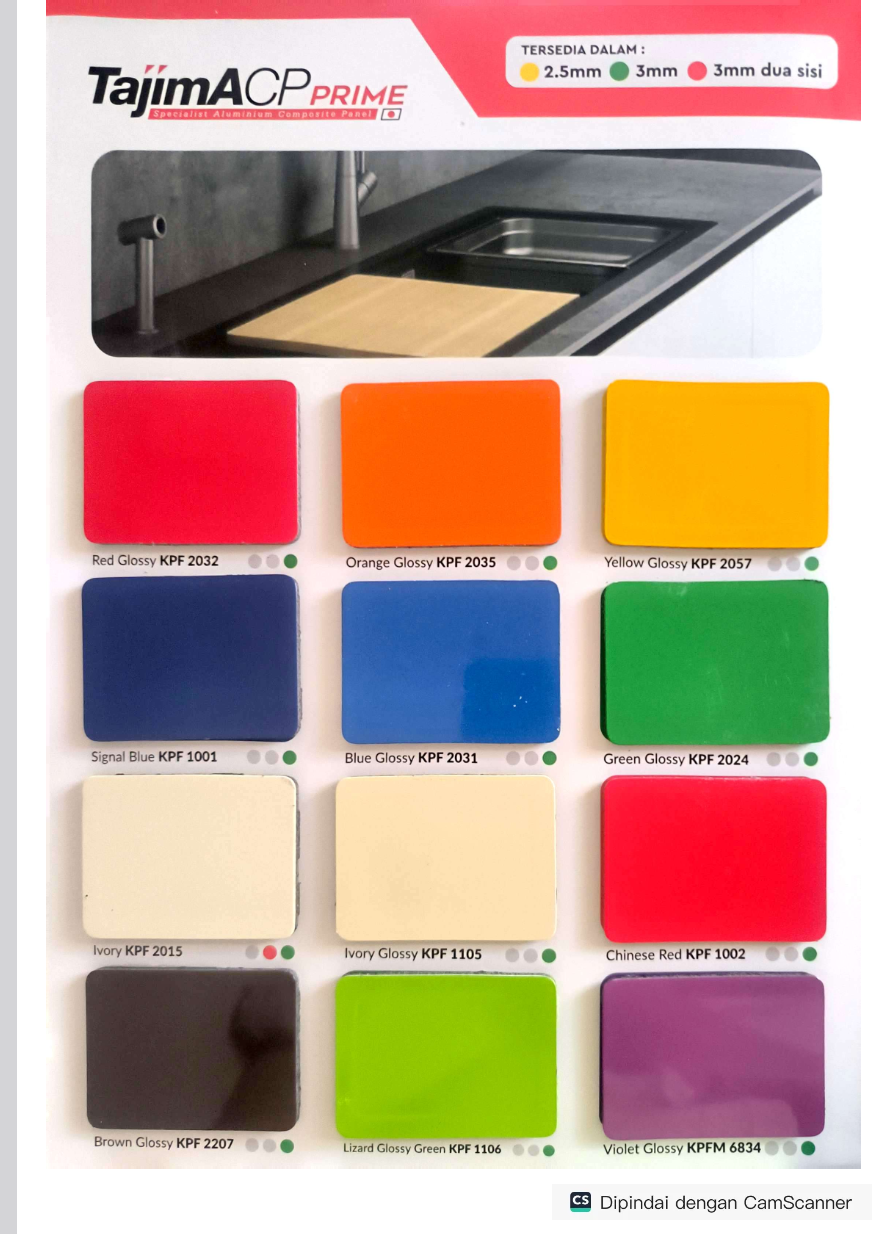 ACP TAJIMA Termurah dan berkualitas, cocok diaplikasikan pada Kitchen Set, Pintu Aluminium, Gerobak, Booth, Billboard, Neon Box, Lemari Aluminium, Karoseri, dll. TAJIMA memberikan Jaminan Pengiriman yang cepat serta Kualitas & Harga terbaik dikelasnya.